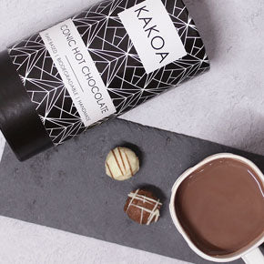 It’s only natural that the first class vegan Chocolatiers at Kakoa should have an iconic classic hot chocolate powder to meet the demands of the conscientious partaker of delicious beverages. Or in other words, have a fantastic hot chocolate for the modern vegan to enjoy free of worry. To wash down some of the best vegan chocolates in the UK, from the largest range of flavours in the UK, why would you go anywhere else?