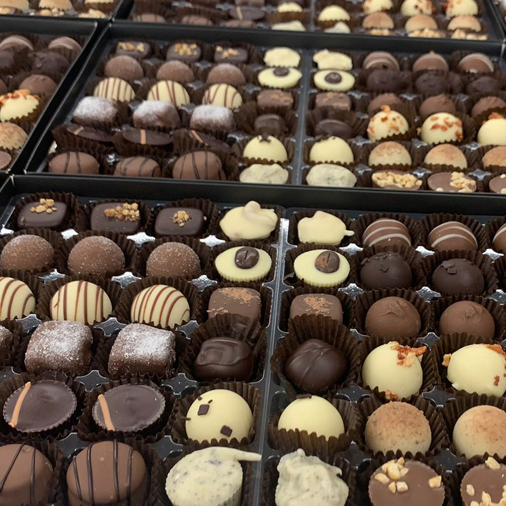 A lively, floral gin with plenty of juniper is combined with a smooth oat milk chocolate ganache to make our cheeky vegan gin truffle. Fancy a bit of fizz? Our signature white chocolate enrobes a ganache filling, infused with lashings of Marc de Champagne for the ultimate indulgence.